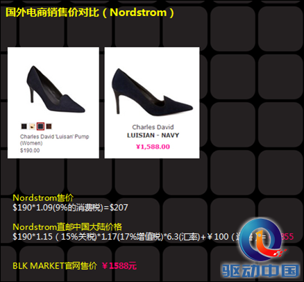 经常出国购物的一定对Charles David、Chinese Laundry 、Beverly Feldman、Bourne、 POUR La VICTOIRE、Dolce vita、Nina等品牌不陌生,这些霸占纽约、洛杉矶、伦敦、米兰以及巴黎等欧美市场上主流高档百货公司如Nordstrom,Macy’s等店的鞋履,曾几何时是中国旅行团扫货的目标,因其质量上乘,价格合理,又不失时尚品位,而成为抢手货。随着品牌认知度增加,海淘、代购也瞄准了这些产品,但因为鞋子代购不能试穿,且尺码不全,经常造成带回来不能穿的尴尬。而且代理费、关税、全部加进去,价格也比国外直购高出一大截。