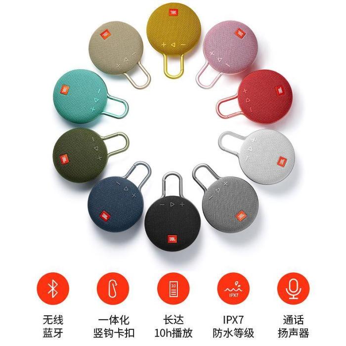 JBL CLIP3无线音乐盒蓝牙音箱是迷你无线便携户外小音箱,属于IPX7级防水级别,还有便携挂扣,方便户外运动挂扣;最高有10个小时的播放时间。