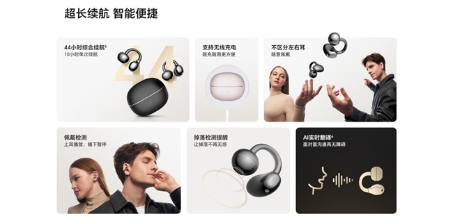 荣耀耳夹耳机2 Pro综合续航可达44小时,拥有10小时单次续航性能;支持无线充电,随充随用更方便;快充实现充电10分钟使用3小时,充满一次电,即可满足一周使用需求。