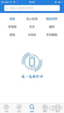在“3K助手”中主要有五大块内容:市场(推荐热门游戏应用、活动)、发现(发布应用市场最新消息、苹果最新资讯)、搜索(搜索你想要的应用或游戏)、管理(查看下载进度、对iPhone中的应用程序进行管理)、更多(清空缓存、3K助手相关信息、版本信息等)