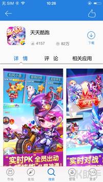 以下载“天天酷跑”这款游戏为例说明。搜索结果以列表形式进行排列,简单明了。打开详细信息后可以看到软件的详情和下载量,点击“下载”即可一键下载和安装,无需输入繁琐的苹果账号密码等等。