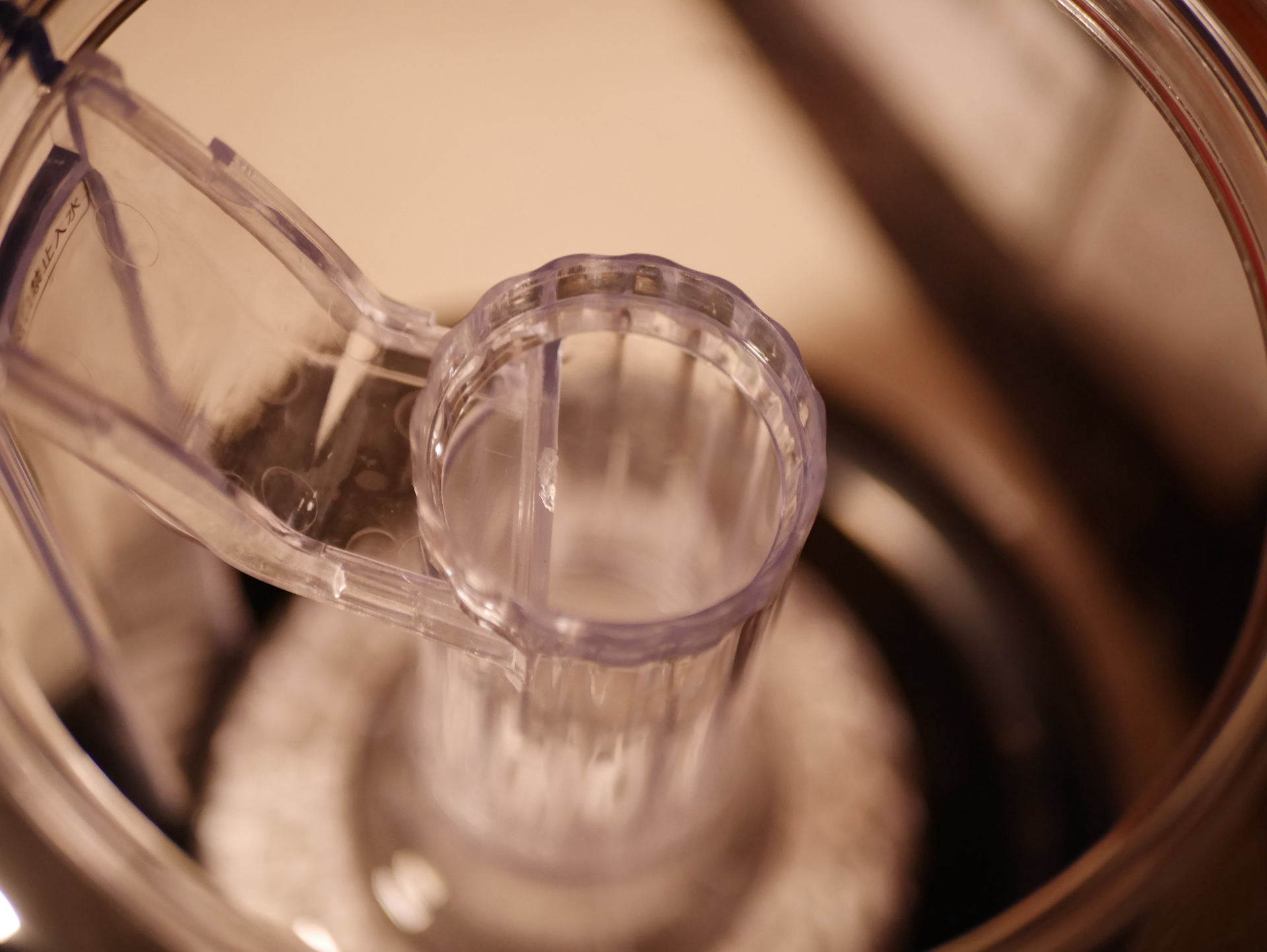 加湿器顶部的盖子可以打开,因为本身水箱是不可拆卸的,毕竟有2.5升容量,就算能拆,搬起来也会很费劲,还不如直接用水壶一类的工具加水,而且这种开盖设计,加水会比较方便。