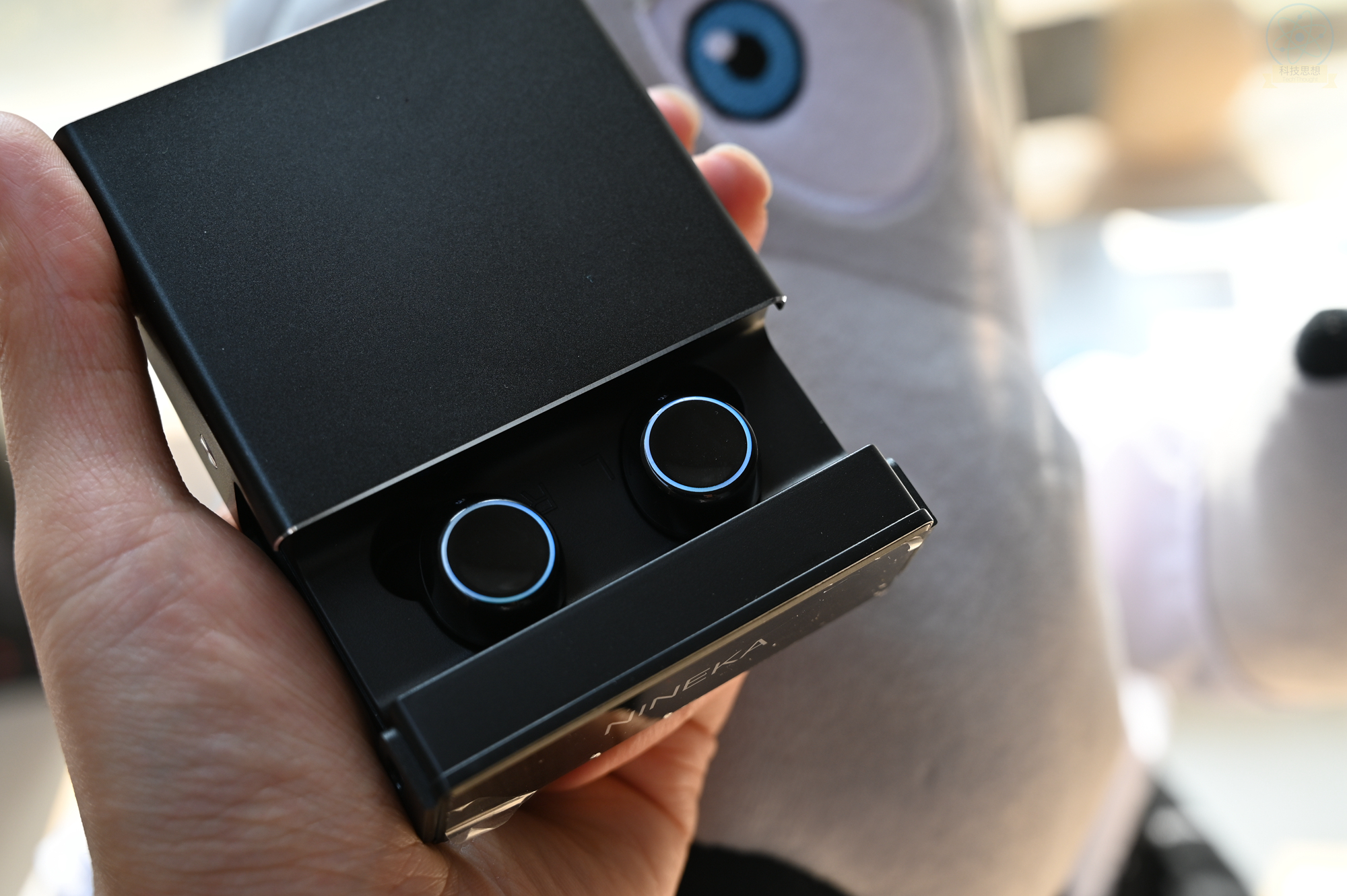 南卡N2的这个充电盒,采用了磁吸式的开合方式,但是因为开合比较紧密,所以双手才能够比较轻松的打开,这也保证了充电盒本身的收纳能力。另外,充电盒外面的南卡NINEKA标志LED灯,在耳机充电的过程中会持续闪烁,根据闪烁的次数,也即从1到4次,可以获知充电盒的剩余电量。