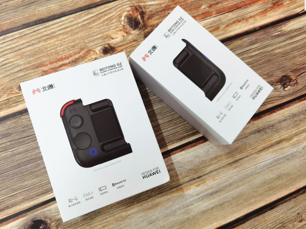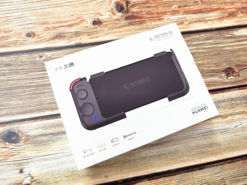 北通G2组合手游手柄也是华为智选下的生态产品,外包装印有DESIGN FOR HUAWEI,原生适配华为EMUI设备,无需第三方插件等使用,所以说华为荣耀玩这手柄外设是最NICE,当然其他的设备也是支持的。