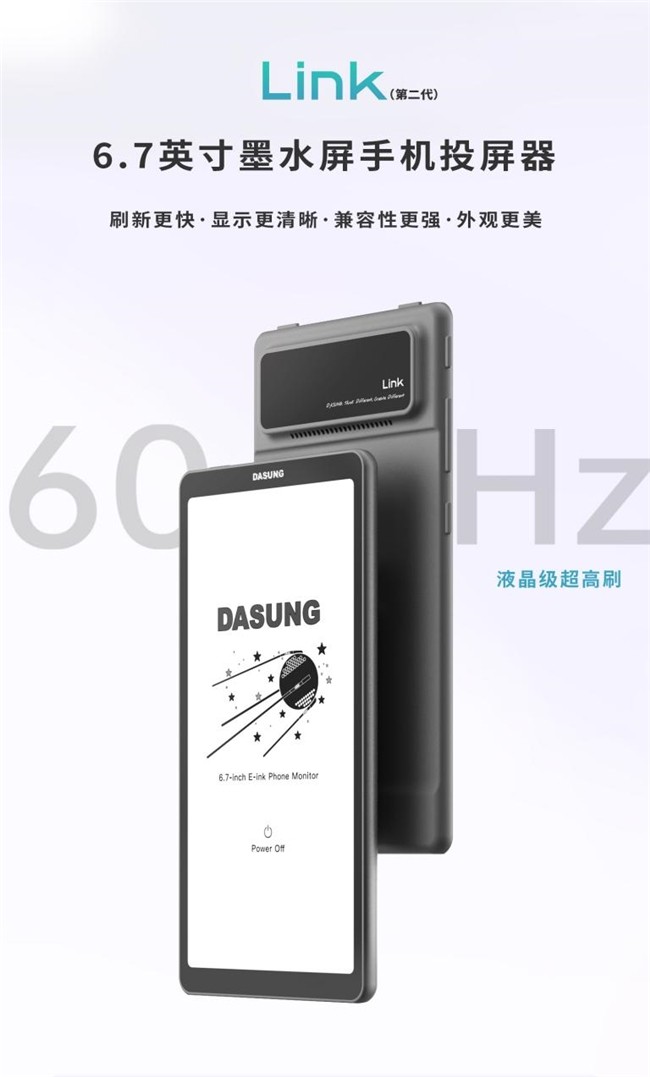 2026年4月1日,作为墨水屏显示器的发明者与领导者,北京DASUNG大上科技终于发布了6.7英寸墨水屏手机投屏器——Link(第二代)。